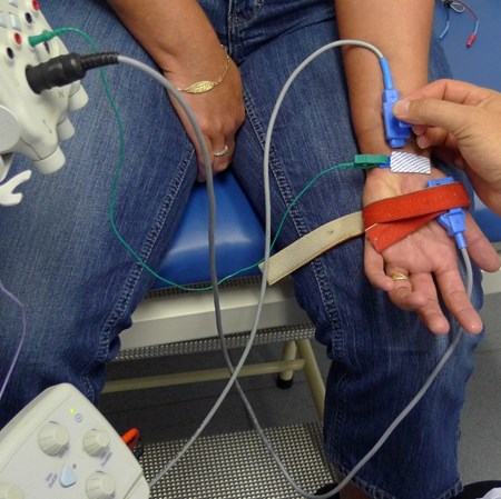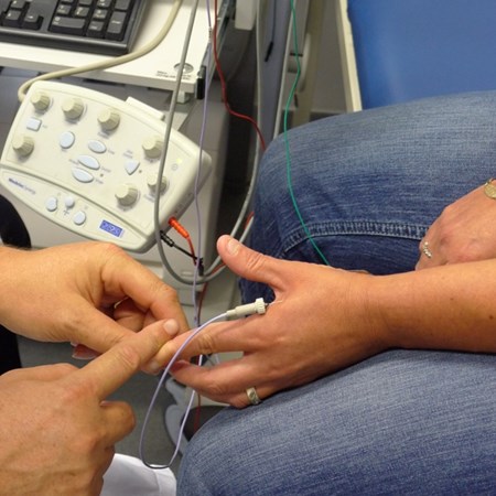 - De zekerheidsdiagnose wordt verkregen door een elektromyogram (EMG). Hiervoor zal de arts u doorverwijzen naar een neuroloog of fysiotherapeut. Door dit onderzoek krijgt de specialist informatie over de functie van de zenuwen en spieren. Tijdens dit onderzoek worden aan de zenuw en spier kleine elektrische schokjes gegeven. Via deze schokjes kan de geleidingssnelheid bestudeerd worden. Een geknelde zenuw zal een tragere geleidingssnelheid hebben. De neuroloog of fysiotherapeut geeft een verslag door aan uw specialist.