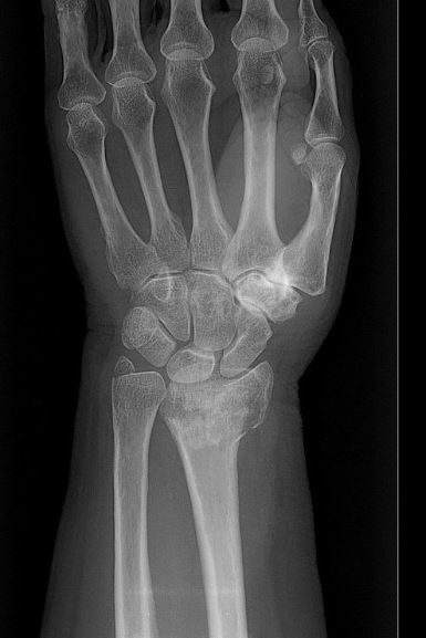 - Bij onstabiele verplaatste fracturen is de stand van de pols vaak anders in vergelijking met de andere hand.