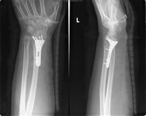 Voor de behandeling van instabiele, verplaatste fracturen maken de handchirurgen sinds jaren gebruik van een volaire plaat. Deze plaat volgt de anatomische vorm van de radius indien ze aan de onderzijde van de onderarm wordt geplaatst. Er zijn verschillende types. De keuze is afhankelijk van de fractuur. De handchirurgen kozen voor deze plaat omdat ze gebruik maakt van het principe hoekstabiliteit. Er zit namelijk in de schroefkop ook een schroefdraad. Door deze extra schroefdraad zit de schroef verankert in de plaat en wordt het risico op uitscheuren van de schroef uit het bot sterk beperkt. Het grote voordeel van deze volaire plaat is de vroege mobilisatie. Geleidelijk aan bewegen van de hand is al mogelijk vanaf 10 dagen na de operatie.