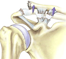 - Type 2: Scheur van het kapsel rond het AC-gewricht. Er is een lichte trapstand.
