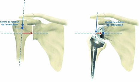 Het pijnprobleem wordt opgelost door nieuwe gewrichtsoppervlaktes, het krachtsverlies en pseudo verlamming door een veranderde mechaniek in de schouder met verleggen van rotatiepunten en krachtsarmen.