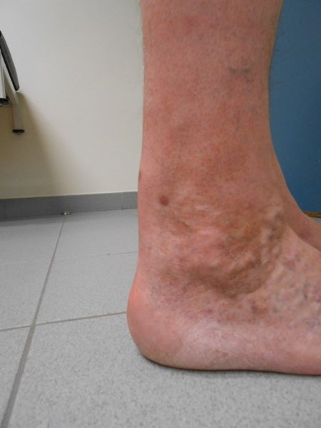Chronische overbelasting van de achillespees leidt tot structurele veranderingen op microscopisch niveau, we spreken dan van tendinose. Dat treedt klassiek op in het middelste derde van de achillespees. Klinisch kan tendinose gepaard gaan met lokaal verdikken van de pees (fig. 1), nodule vorming, warmte en stijfheid. Initieel is er last na inspanning, nadien ook tijdens inspanning en in een gevorderd stadium kan de pijn continu aanwezig zijn. Tendinose dient men te onderscheiden van paratenonitis, waarbij de bindweefselige peesschede waarin de achillespees ligt ontstoken is. Dat presenteert zich met gelijkaardige symptomen als tendinose, maar hier is er forse gevoeligheid bij palpatie en kan er crepitus aanwezig zijn.