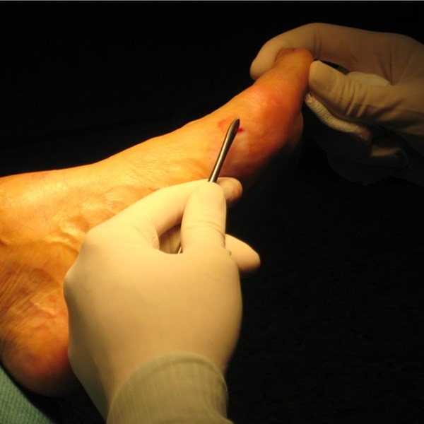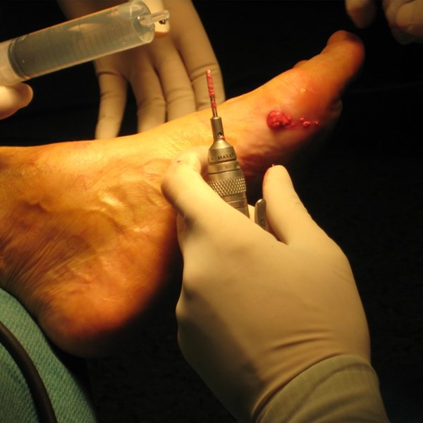 Percutane (= door de huid) voetchirurgie is een nieuwe techniek die in AZ Groeninge op regelmatige basis wordt toegepast. Met deze nieuwe techniek worden voetoperaties zoals hamerteen- en hallux valguscorrecties uitgevoerd via incisies van 2 à 3 millimeter. Deze minder ingrijpende techniek biedt verschillende voordelen voor de patiënt.